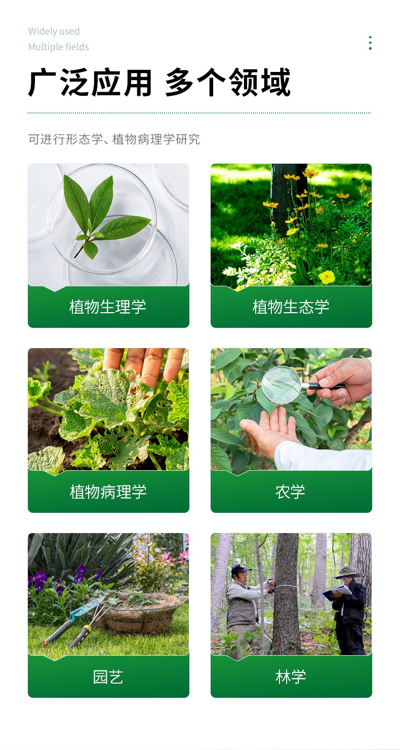 仪器可以直接测量叶片长度、宽度和面积,并集成了GPS定位以及4G无线传输系统,增加了Type-C接口,可将测量数据和定位信息同时导入计算机和云数据平台,方便广大科研者对数据的进一步处理。