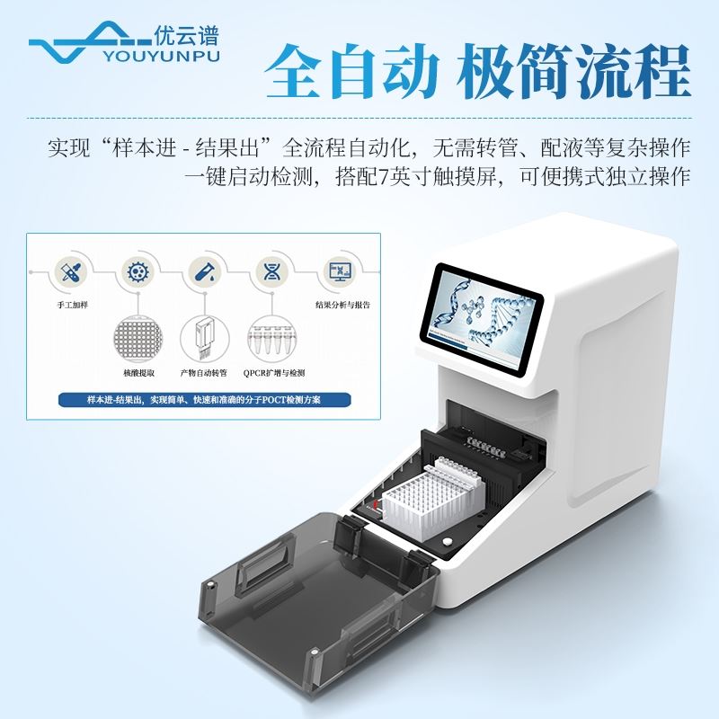 集核酸提取,荧光定量扩增,检测为一体的全自动分子检测一体机。