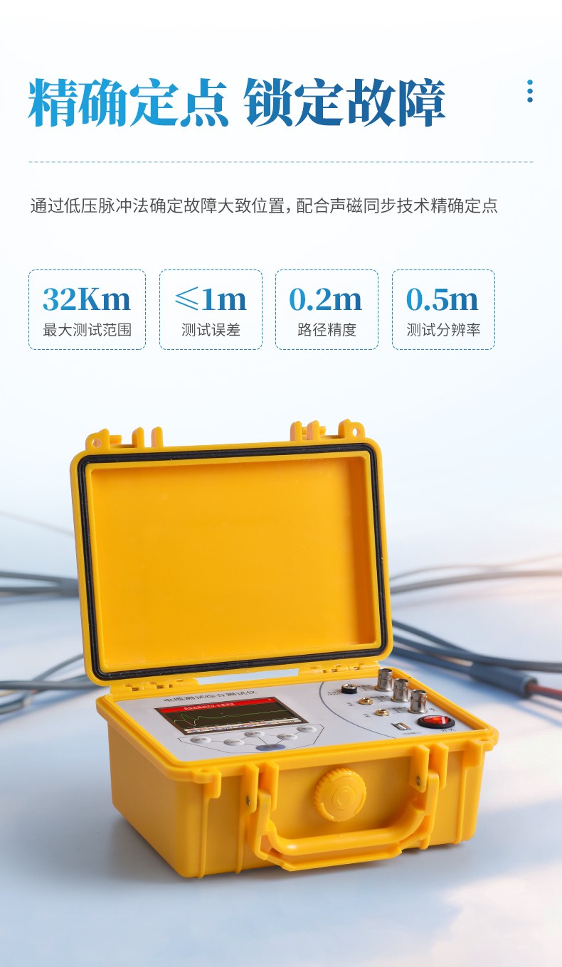 高低压电缆故障检测仪是用于检测电力电缆、通信电缆等故障的综合性设备,可定位开路、短路、高阻故障等,并支持路径探测。通过低压脉冲法确定故障大致位置,配合声磁同步技术精确定点。