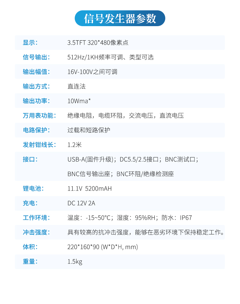 14、信号发生器体积:220*160*90 (W*D*H, mm)